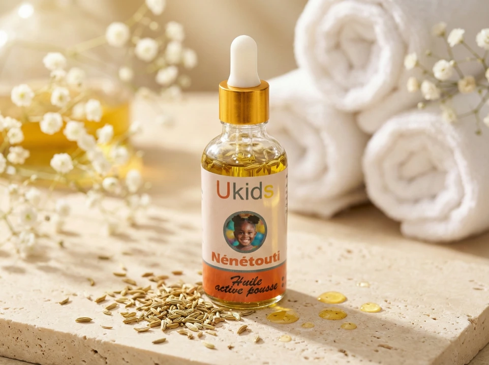 L'huile Active pousse Nenetouti est une formule spécialement conçue pour favoriser la croissance et la santé des cheveux. Elle est composée d'un mélange d'huiles naturelles bénéfiques pour les cheveux.